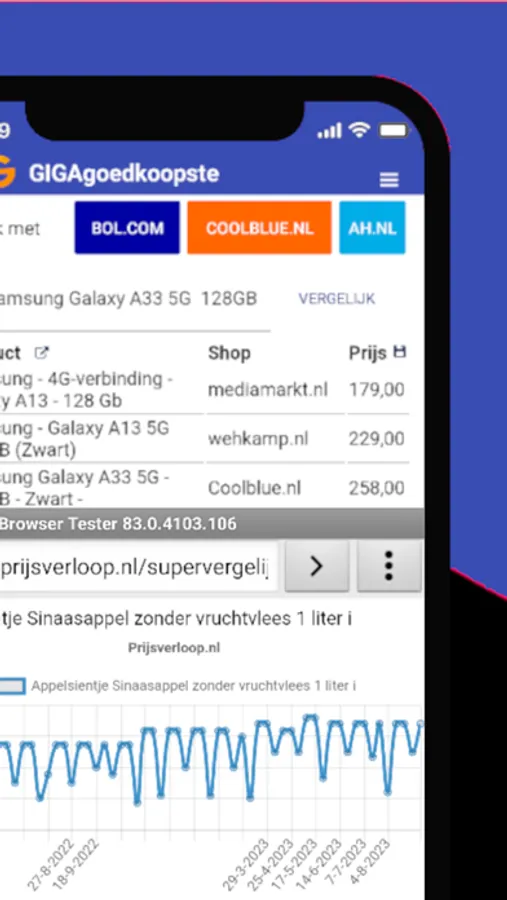 Vind de goedkoopste producten bij alle webshops in binnen- en buitenland.