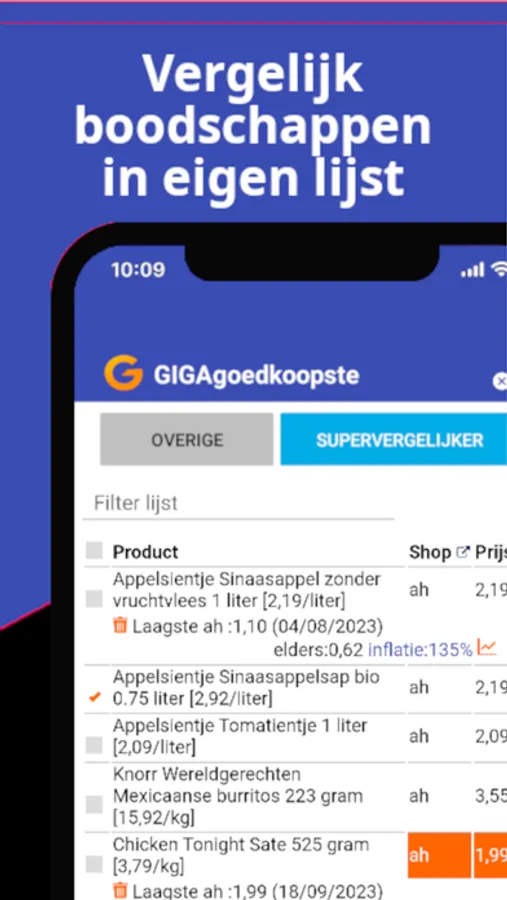 Houd de prijzen bij alle supermarkten in de gaten met de SUPERvergelijker.