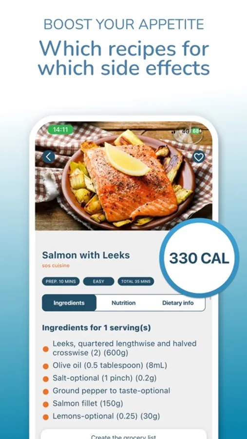 ● In summary, whether it is to monitor your intake to avoid losing weight, develop your knowledge of nutrition against cancer, find inspiration for recipes or menus adapted to your side effects of the day? The app can be used in a thousand ways, as it is full of resources.