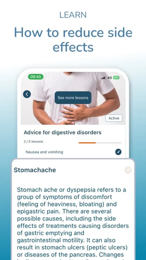 ● 2. Concretely, before preparing a meal, you will select in the app the side effect experienced today and our unique tool in the world will process all these dietary goals at the same time, to offer a combination of foods and recipes tailored to your tastes and symptoms. No need to think or become a specialist.