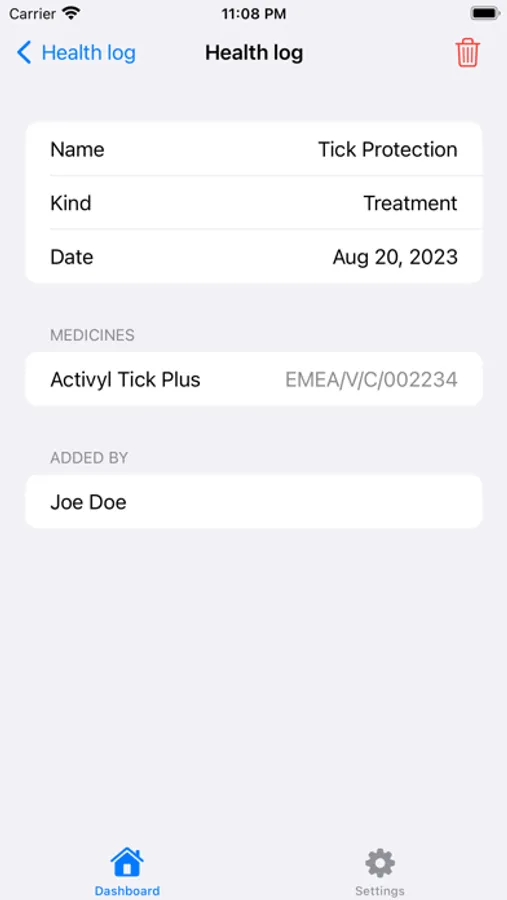 • Health log
