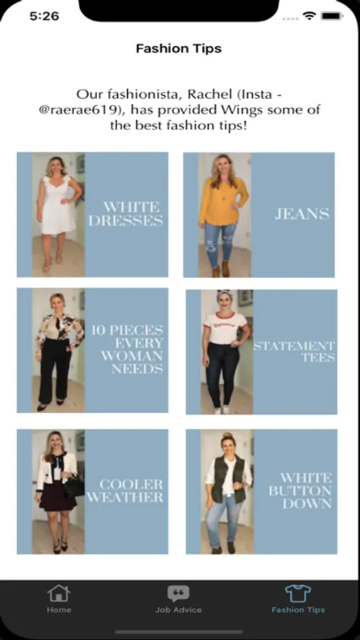 Welcome to Wings for Success' official app! Here you will find advice on how to nail an interview, fashion tips to feel confident, book clothing appointments, and more! View us on our website, https://wingsforsuccess.org/, or on Instagram/Facebook, @wingsforsuccess, for more information.