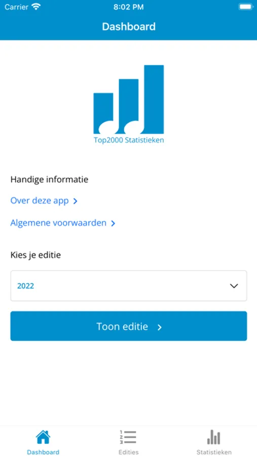 De Top2000 Statistieken app is ontwikkeld voor fans en door fans van de NPO Radio 2 Top2000. Met behulp van deze app heb je alle gegevens bij elkaar sinds de start van het evenement (1999). Hierdoor is het mogelijk om terug te kijken in de geschiedenis en na te genieten van al deze mooie edities, jouw favoriete artiest op te zoeken met bijhorende noteringen of de grootste stijgers en dalers van een specifieke editie te bekijken. Deze app is voor iedereen!