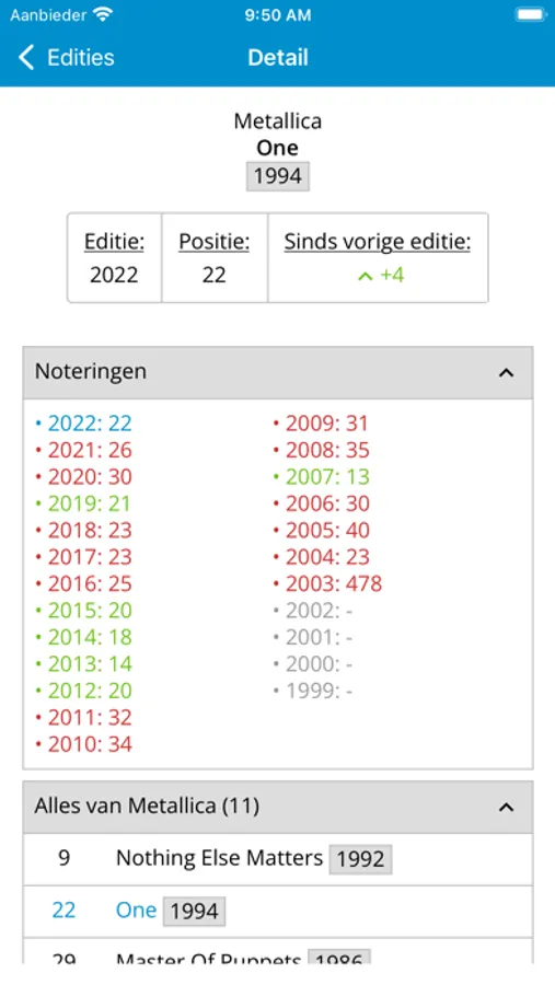 Deze app is onofficieel en heeft geen enkele relatie met de Nederlandse Publieke Omroep (NPO), NPO Radio 2 of de Top2000. De data die in deze app word gebruikt is data die openbaar beschikbaar is gesteld door Radio 2 en toegankelijk voor iedereen via de daarvoor bestemde Top2000 website. Het enige wat wij hebben gedaan is er een app van gemaakt. We verzamelen geen gegevens voor deze app en verdienen er op geen enkele manier geld mee. Verder zijn we op geen enkele manier betrokken bij het evenement en kunnen dus ook niet aansprakelijk worden gehouden.