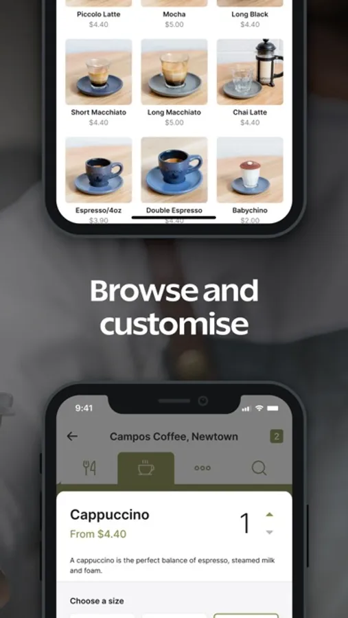 Explore the menus. Personalise your favourite items or discover new ones to try.