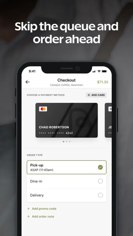 Forgot your wallet? No worries, order seamlessly with secure in-app payment.