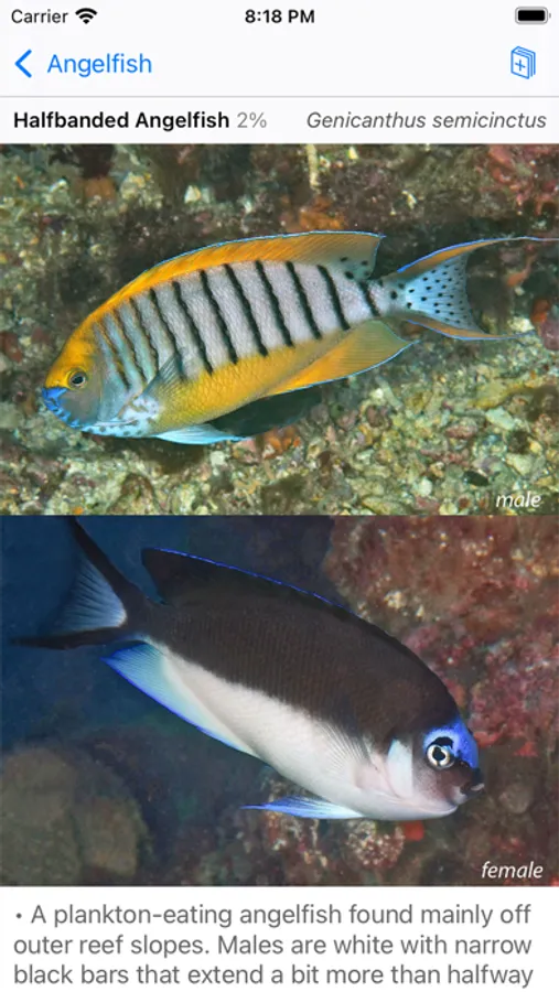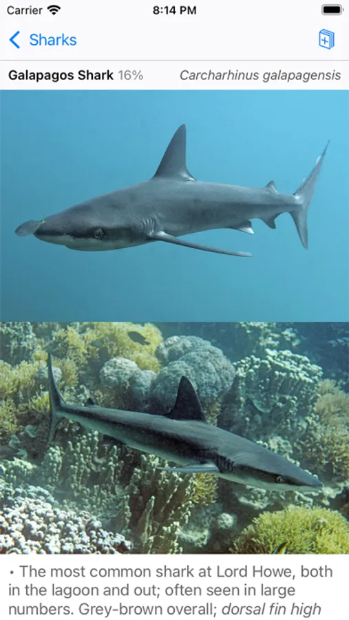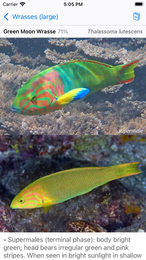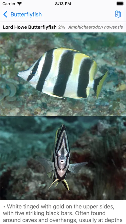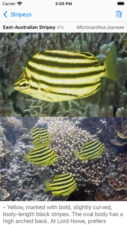 Released May 2023. Covers 351 fish species seen by scuba divers and snorkelers at Australia's Lord Howe Island. Flip through screens like pages of a book, or find a fish quickly by color or shape. Up to 5 photos per fish -- showing juveniles, males, females, colour variations. Sharpen your fish ID skills with interactive flashcard-style quizzes. Lord Howe Island is the world's southernmost coral reef ecosystem and a UNESCO World Heritage Site.