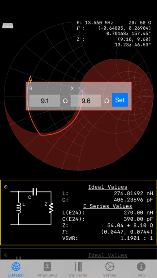 - Read out Z, Y, VSWR, Q and Gamma from smith chart.