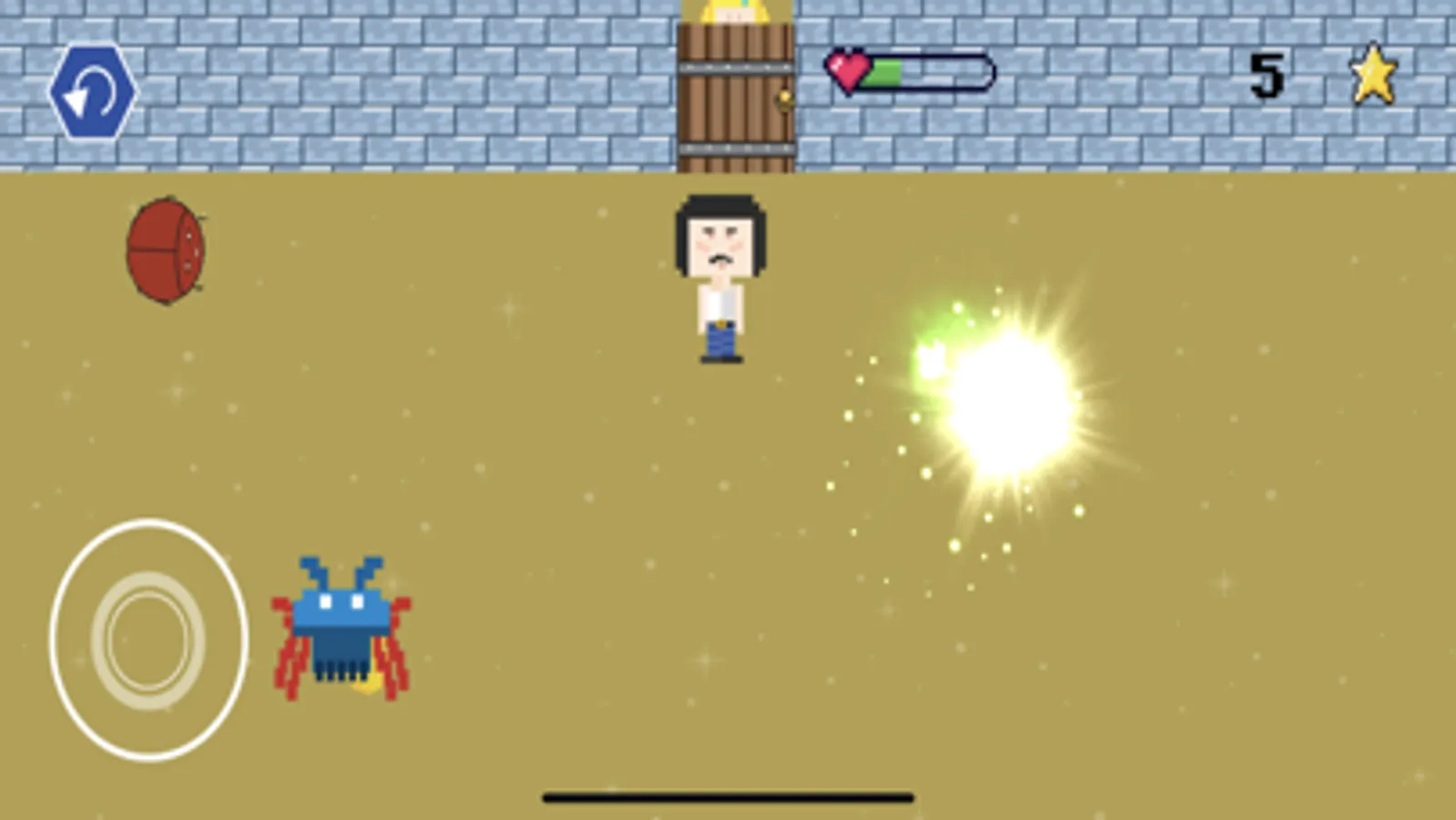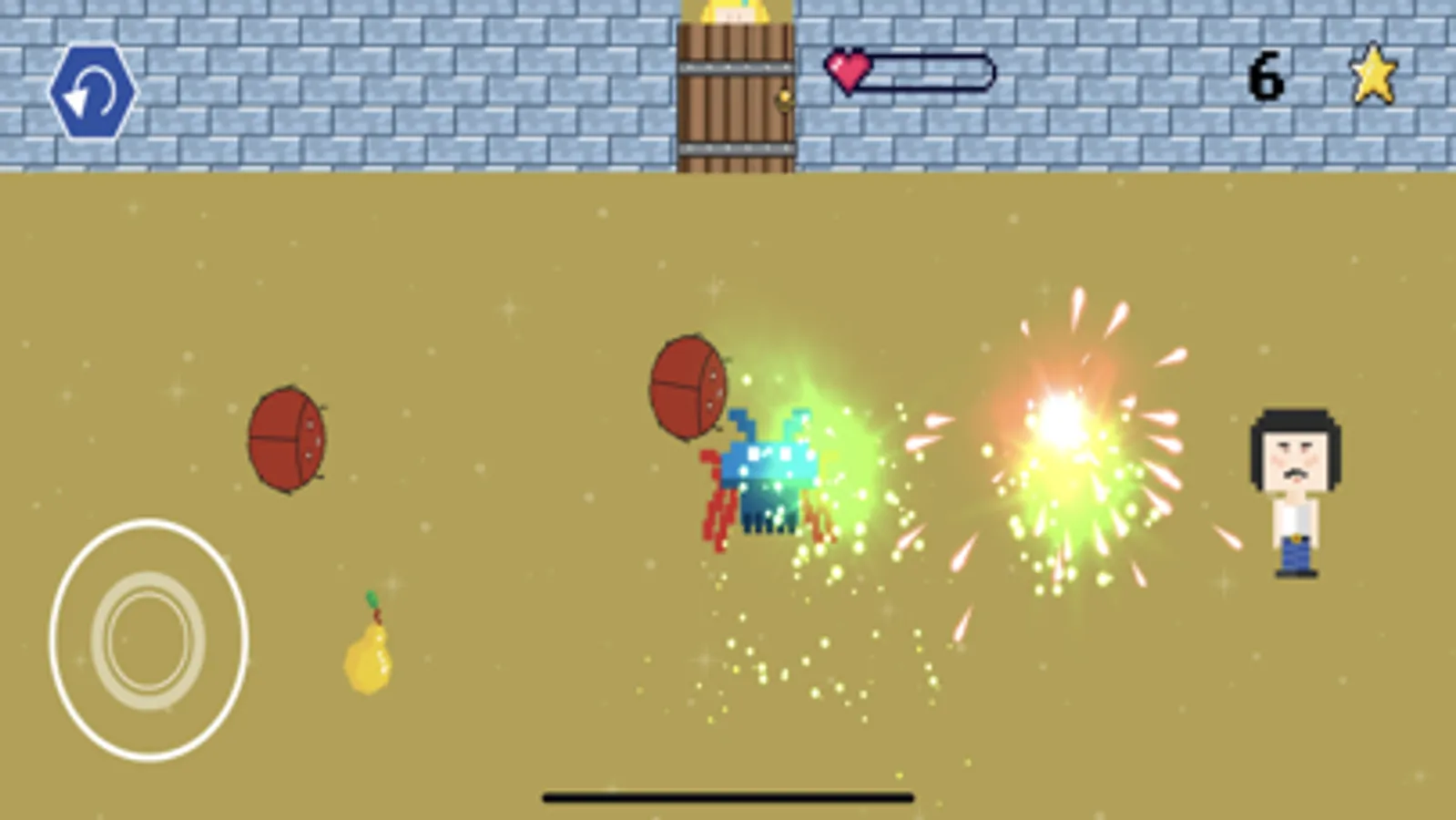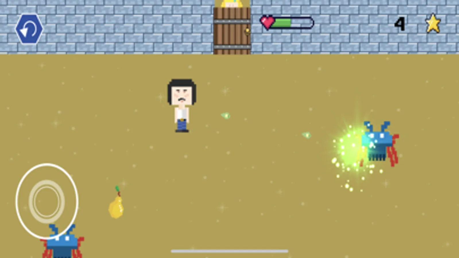 Move to pick up and absorb items to stay alive and shoot down the mechanical bugs that are coming towards you to attack you.