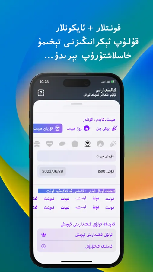 ئۇيغۇر تىلىنىڭمۇ ھەر خىل فونتلار بىلەن قۇلۇپ ھالىتىڭىزگە گۈزەل تۈس قوشقۇسى دەپ ئۇشبۇ ئەپنى چىقاردۇق.