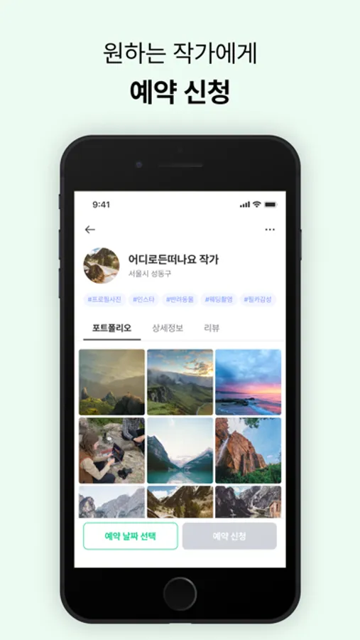 - 작가의 포트폴리오와 리뷰를 확인하고, 원하는 작가에게 예약을 신청해보세요.