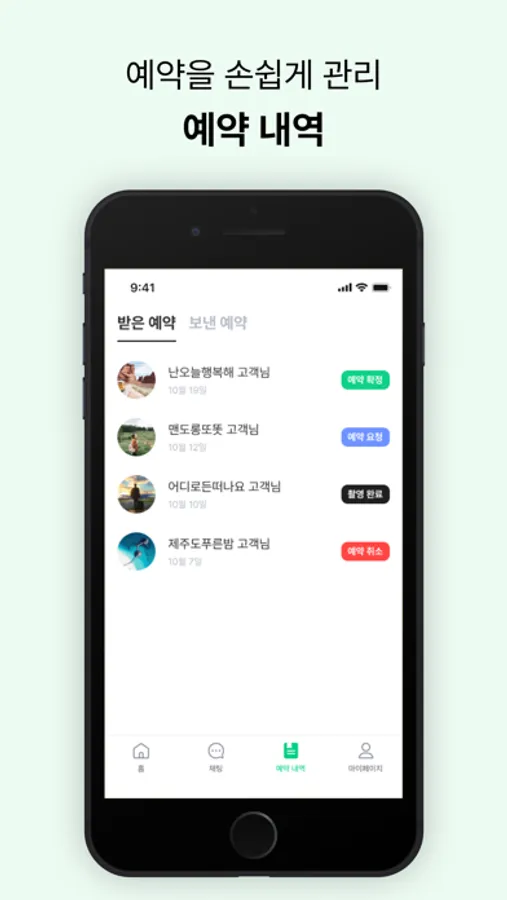 - 내가 보낸 예약과 받은 예약을 한 눈에 모아볼 수 있어요.