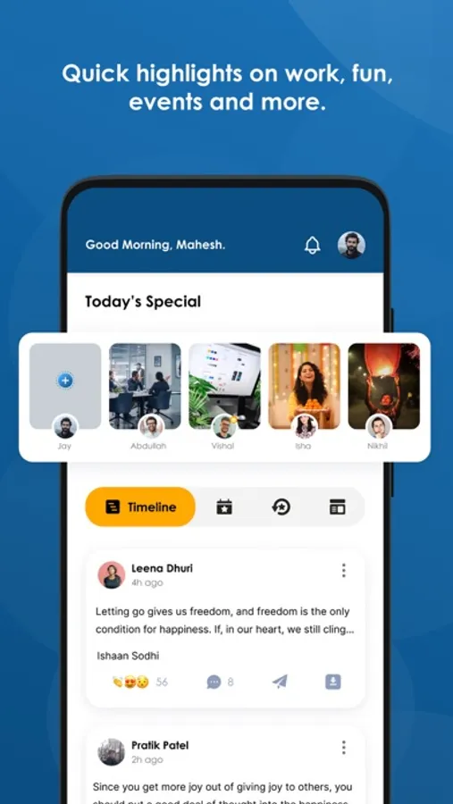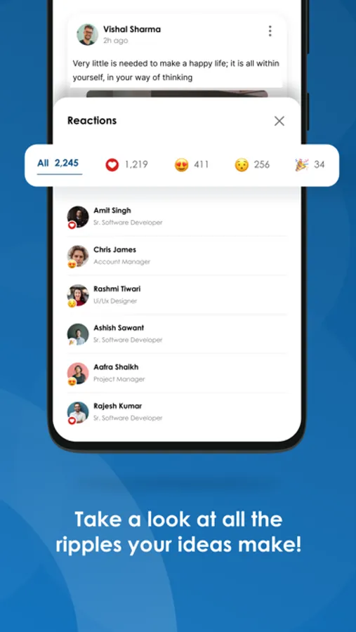 Ripples is an engaging app with a user-friendly interface that allows employees to connect organically. Ripples supports image uploading, post creation, event creation and more for employees to interact in fun and creative ways.