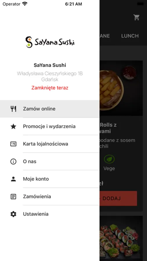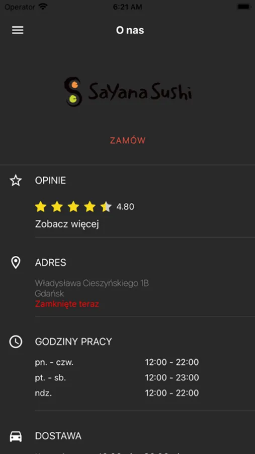 Oprócz zamawiania online aplikacja pozwala sprawdzić: