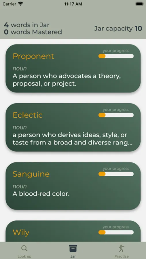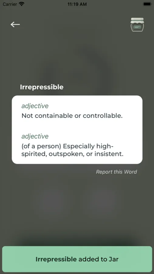 Use Word Jar to search for the definition of a word, add it to the Jar, and the app will do the rest!