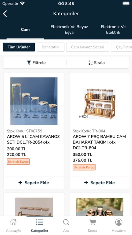 * Ürün kategorilerinde filtreleme yapabilirsiniz