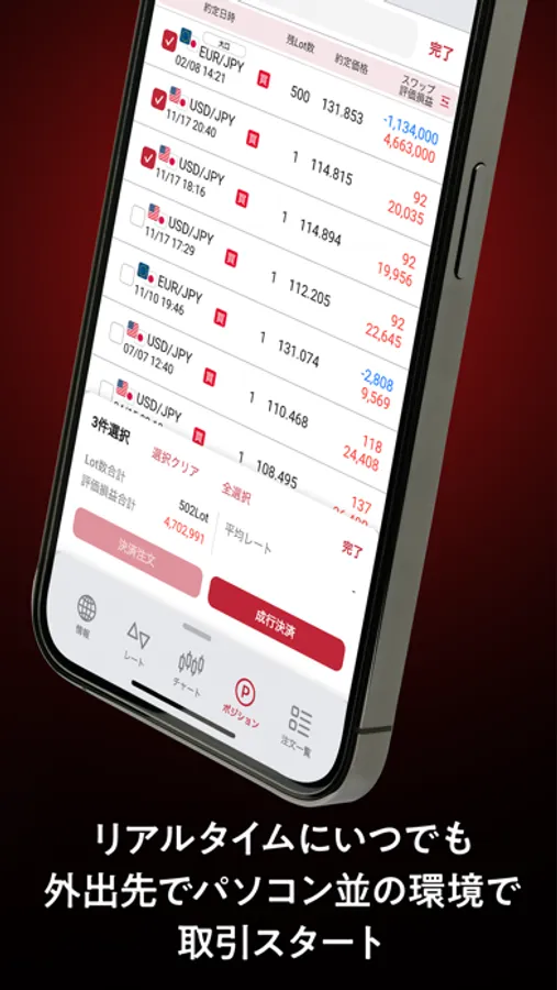 全ての画面から注文画面に遷移できるので、チャンスを逃さずいつでもどこでもお取引できます。