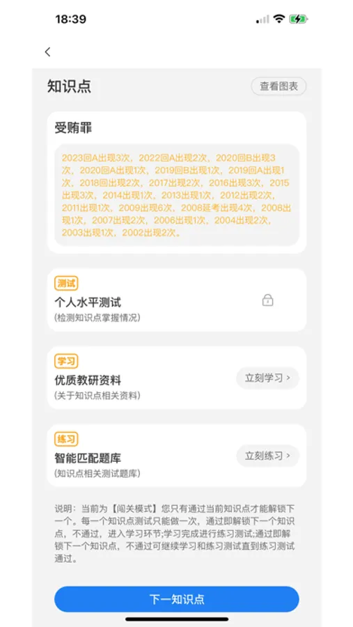 每个知识点都由测试、学习、练习组成,为你提供专业高效的学习模式。考点下涵盖真题、模拟题、课堂、讲义、盲点记忆等学习内容,应有尽有。以考点为基础,快速掌握每个学科必学知识。