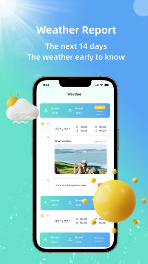 Weather Memory not only provides accurate weather forecast, but also weather details for the next 14 days. It is also not enough to record the weather, capture the sky, and show the corresponding weather record and mood record under the corresponding weather.