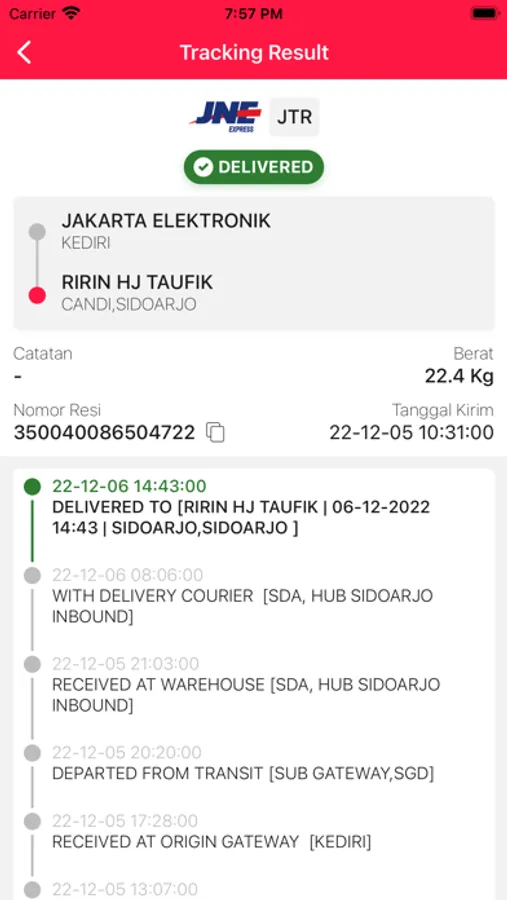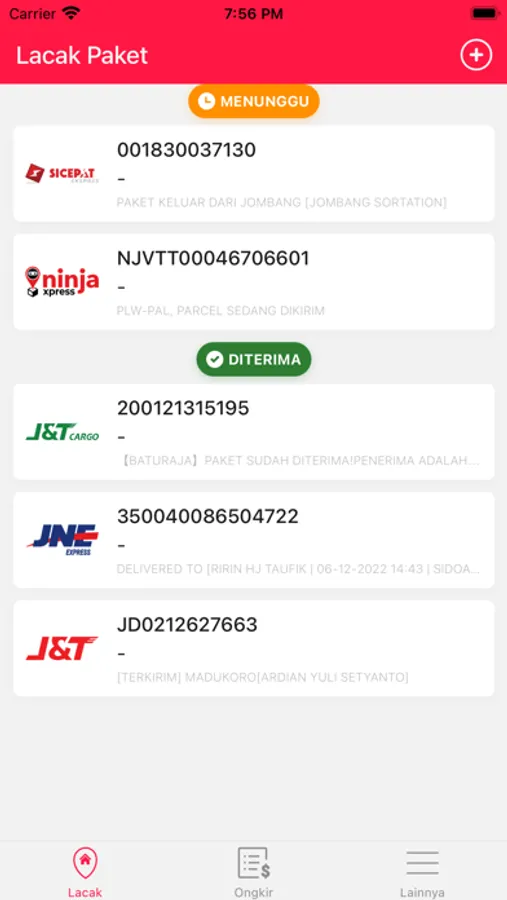 - Membagikan hasil pelacakan paket ke berbagai sosial media