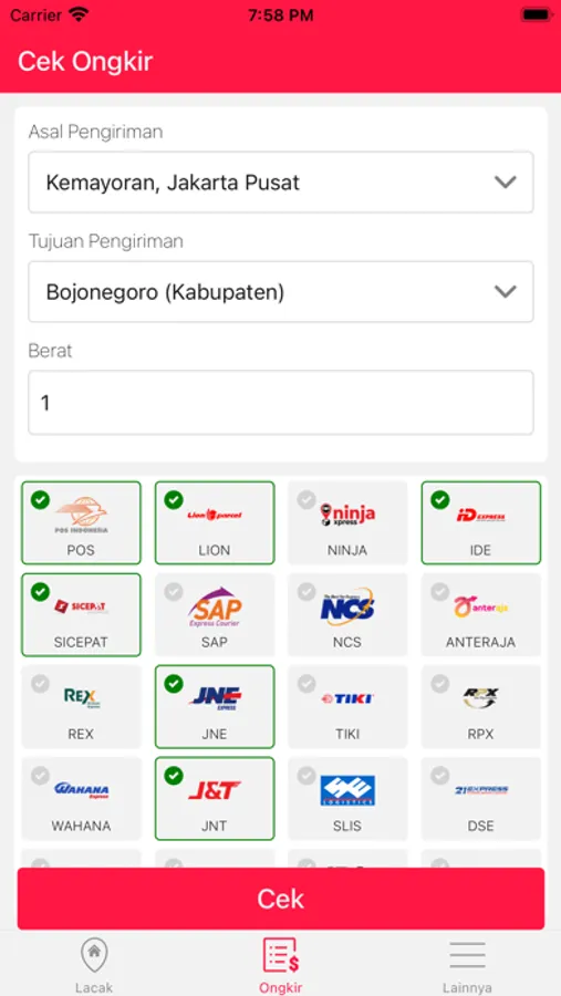 Note: Lacak paket tidak berafiliasi dengan Ekspedisi yang disediakan, bila terjadi masalah dengan paket Anda silahkan bubungi ekspedisi terkait.