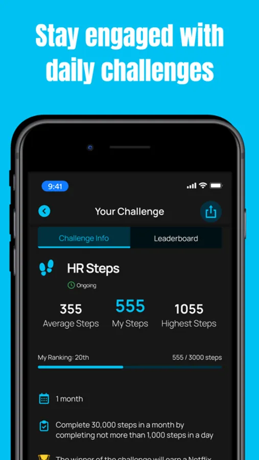 Manyactive’s visibility works through a leaderboard feature that has real-time scores of steps that all participants in the challenge have earned from the start date. The person with the highest score will be at the top of the leaderboard followed sequentially by the runners-up.