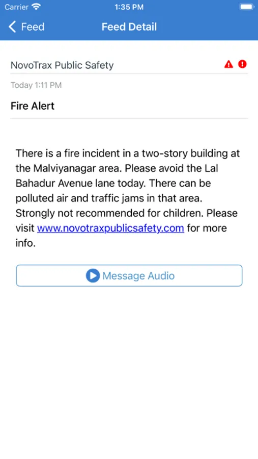 The NovoTrax Emergency Notification System (NovoTrax ENS) connects the general public to counties and states to receive valuable, real-time information regarding bad weather, traffic conditions, fire, active shooters, or any other message needed to get out to the public.