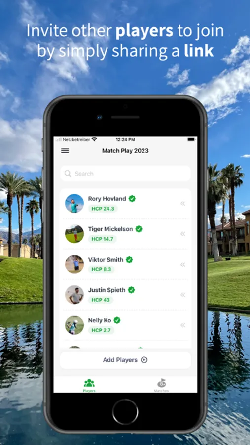 With 1Up, creating your own tournament is a breeze. In just a few seconds, set up a match play tournament tailored to your preferences. Utilize the simplicity of a single link to invite your entire group or send personalized invitations to individual players. Need more control? Manage players manually, giving you the flexibility you desire.