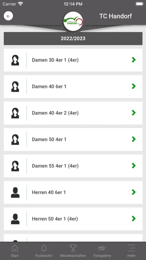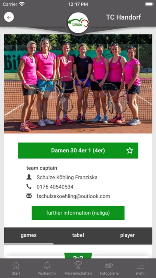 - Alle Mannschaften inkl. der Spieler und den Ergebnissen der Meisterschaftsspiele