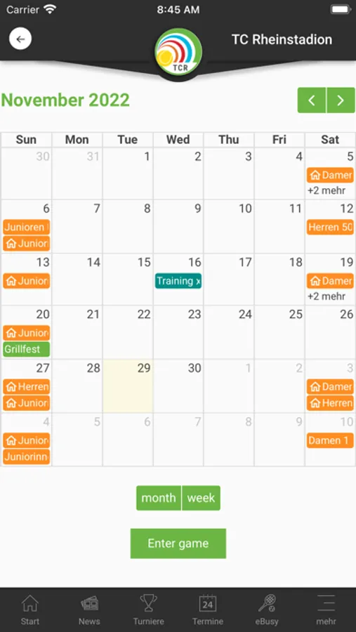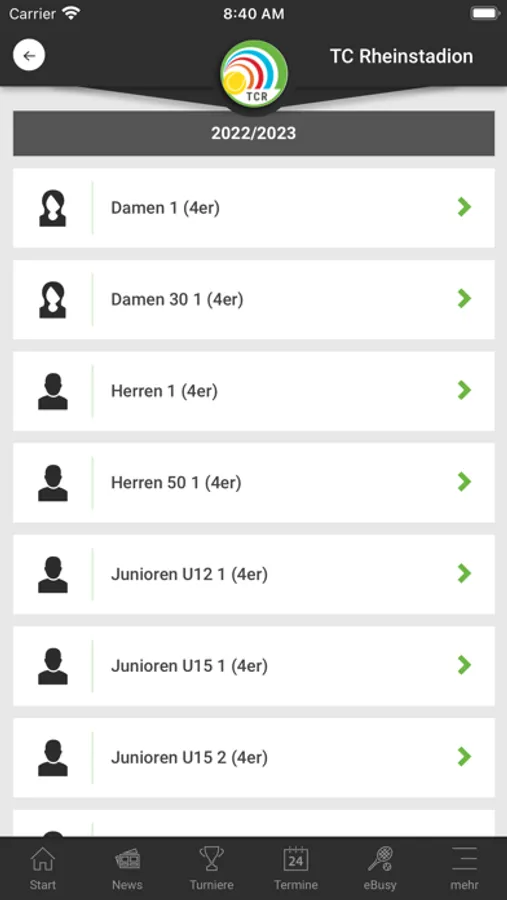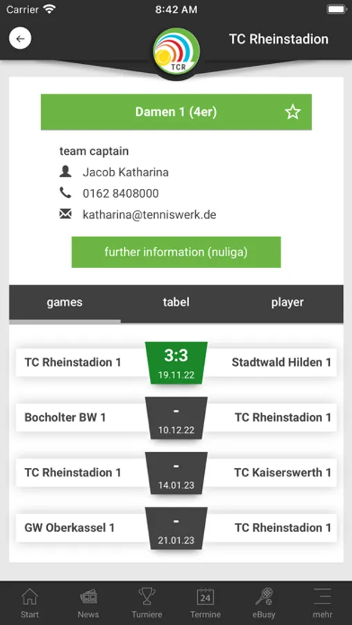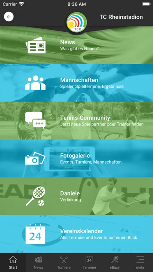 In der TC Rheinstadion App findest Du folgende Informationen: