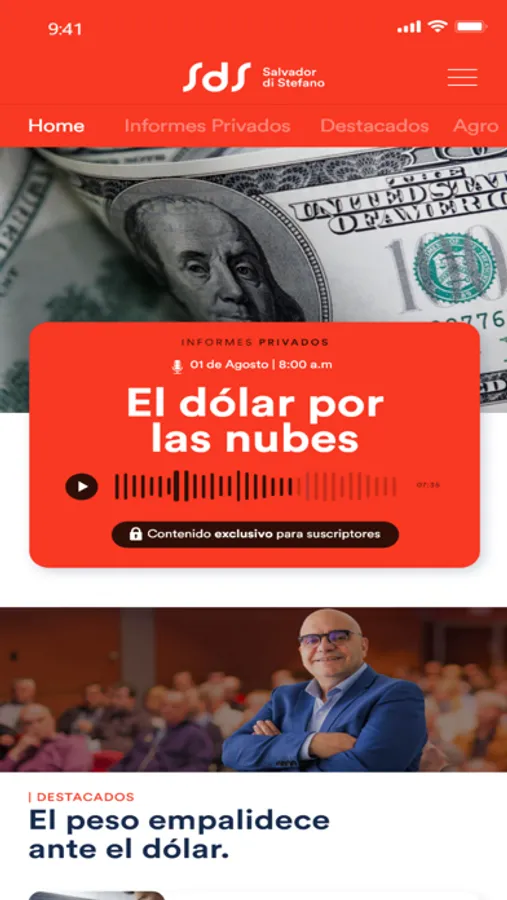 Salvador Di Stefano, apodado el Gurú de la City por uno de los medios de negocios más importante de Argentina, lanza su App Exclusiva. Esta App te brinda acceso a noticias exclusivas en donde vas a tener información exclusiva, el análisis de Salvador sobre temas relevantes en materia económica, política, agro negocios e industria.