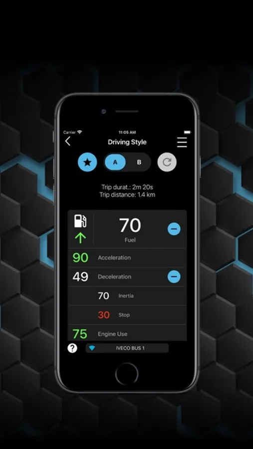 • Driving Style Evaluation: The user experience is enhanced thanks to the real-time driving style KPIs and to the possibility to compare scores between several trips.