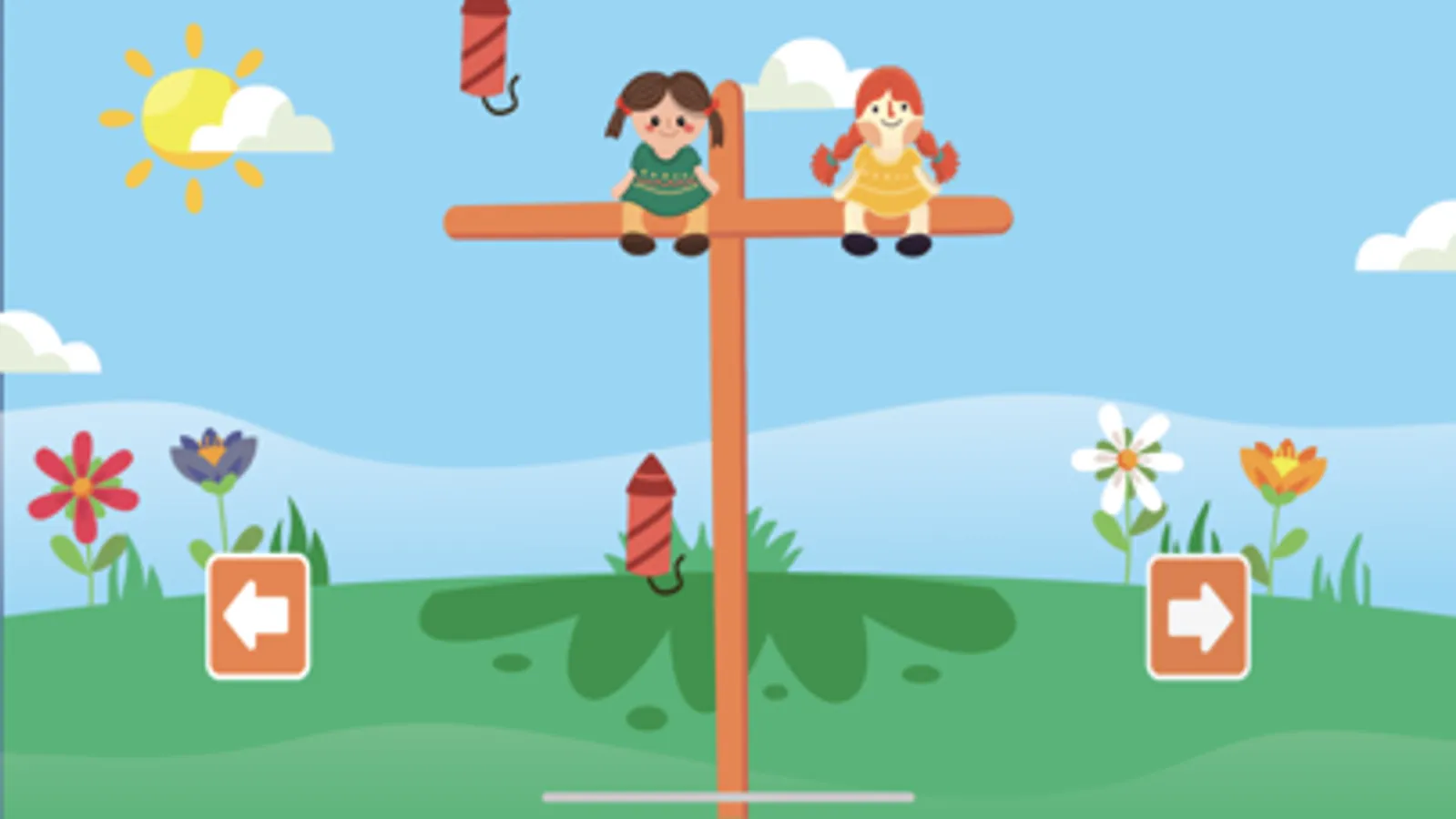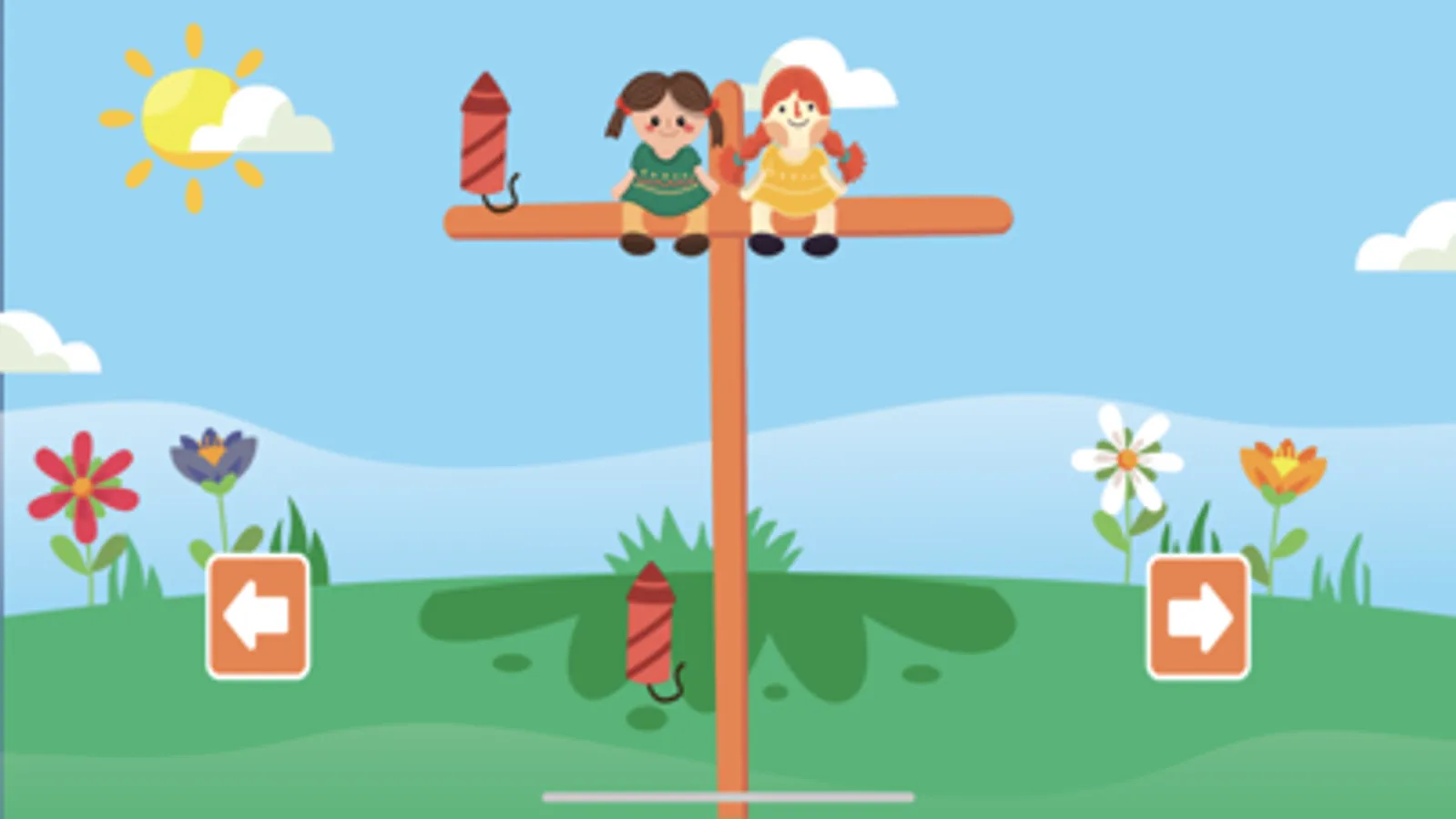 Help the two children avoid the fireworks that are flying in the wrong direction.