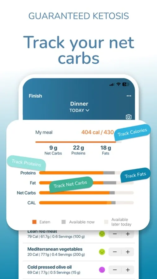 ● 2. You'll maintain ketosis with keto-friendly foods that suit your habits and lifestyle: no cooking if you like. Unlike light, bland and boring diets, you can eat natural, tasty and nutritious foods that you like such as meat, eggs, avocado, cheese, or chocolate. Not to mention vegetables and certain fruits, too often ruled out during keto by mistake. Just stick to your program's daily net carbs.