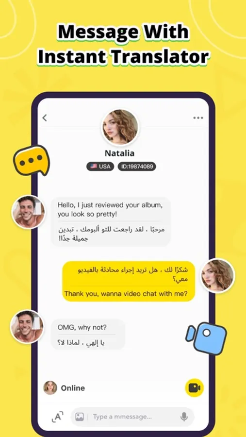 Face to face video chat online, easy to connect with people from different country, share your hobby and life by video calls.