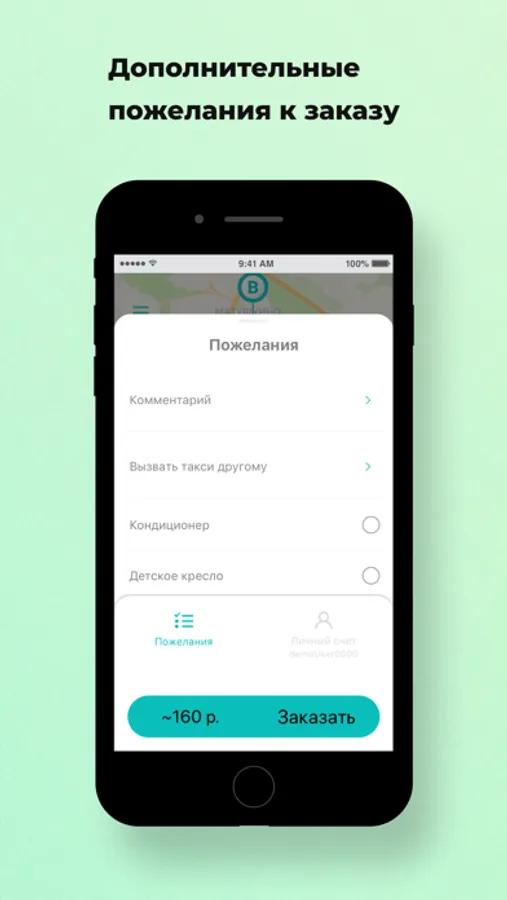 Добавьте к заказу дополнительные пожелания. Например, когда на улице +35 — выберите "кондиционер". Если вы не переносите запах табака — укажите "Некурящий салон", и к вам приедет некурящий водитель.
