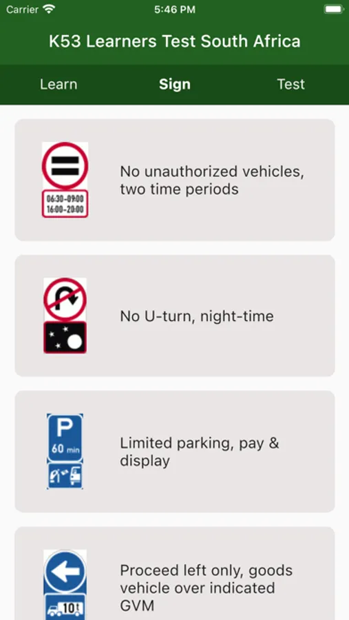 K53 South Africa will help you prepare for your learner's and driver's license test. Thousand plus people have tried the app and got good results on their learner's and driver's license test.