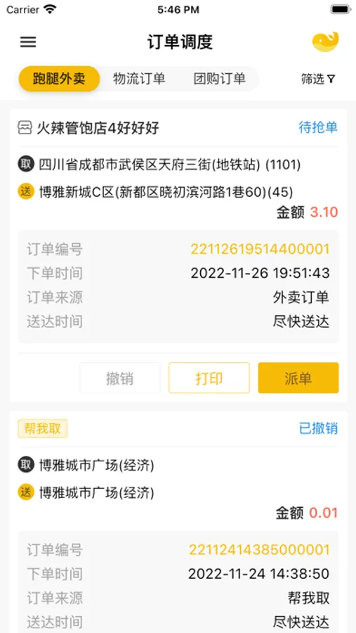 趣来达调度后台,帮助运营者配置外卖跑腿平台运营相关的一切事宜,包括管理平台商家、骑手,管理订单,设置计费以及财务管理等,让运营者全局把控平台。