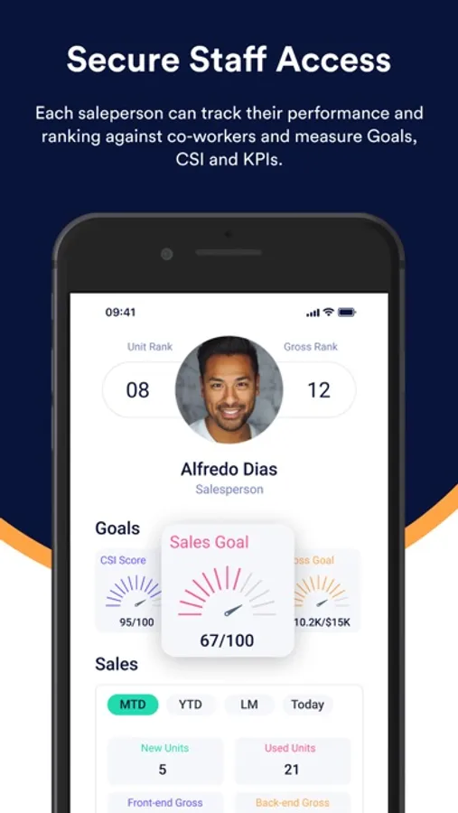 Track KPI's of the overall store and individual sales staff including units, gross,goals, CSI, trends and history down to the deal-detail level.