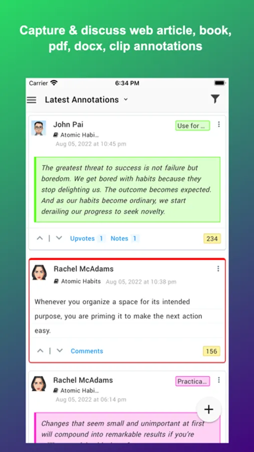 7. Annotate content - Capture text snippets, write side notes, and capture book notes. Use colors to convey significance. Share and discuss annotations.