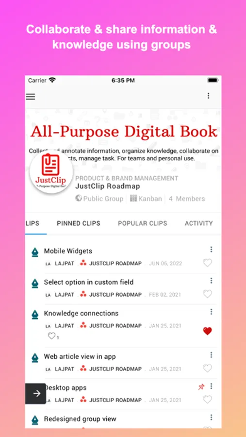 JustClip is an all purpose digital book for you and your team. Capture information, build knowledge connections, share your collection, and easily collaborate with anyone.