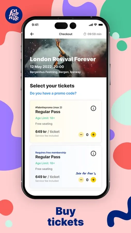 Receive purchased tickets directly in the Fabnite app, on our website and to your email address of choice. Tickets can also be easily shared with friends and family. In Fabnite, you have direct access to a number of organizers' customer loyalty clubs. Through these clubs you will be able to get discounted tickets and other benefits – completely free of charge. If you ask, Fabnite is able to give you personal recommendations about events, places and artists. In case of unforeseen events, such as a change of time, venue or perhaps cancellation, you will immediately receive updates about this. If you need a companion at the event and want a companion pass, you can easily fix this yourself when you buy tickets.