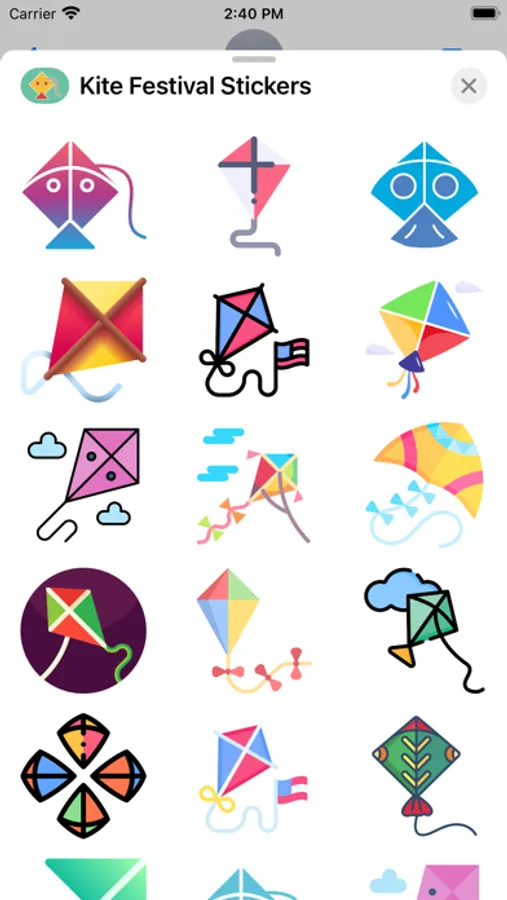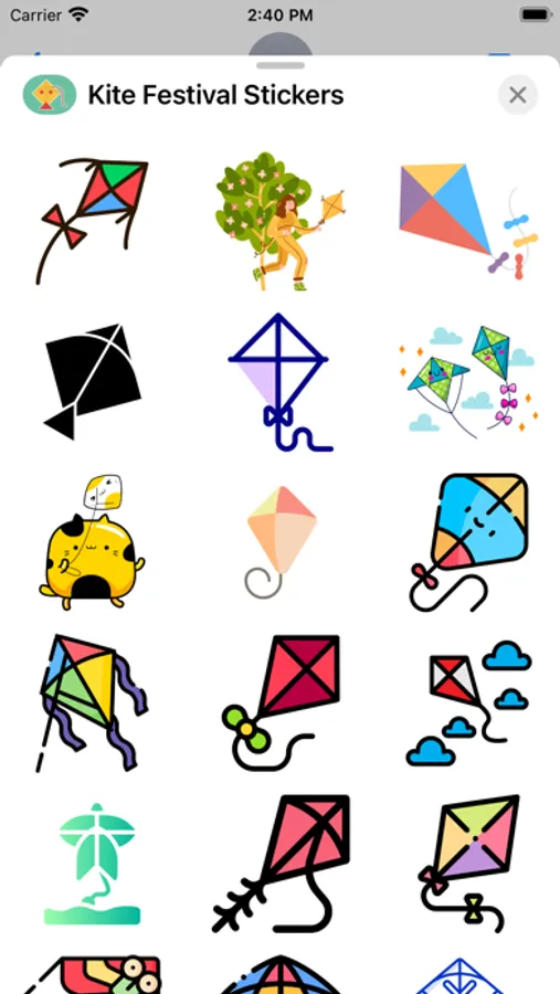 Kite Festival - 2023 Stickers offers you Kite Festival stickers. Please enjoy sending these stickers to your loved ones/Buddies and friends. Your family and friends will definitely appreciate and feel happy getting the festival stickers and have fun.