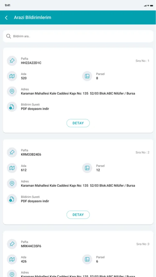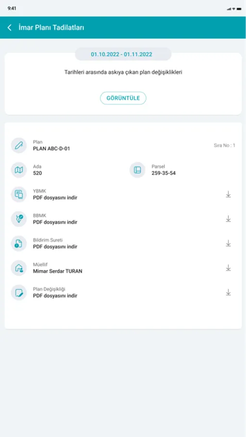 Bildirim Modülünde; Bina, Arsa, Arazi, İlan Reklam, Çevre için yapılmış olan bildirimleri görüntüleyebilme fonksiyonlarına sahiptir.