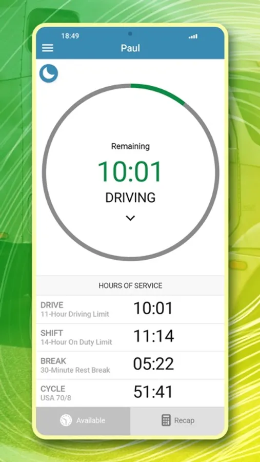 NRG LOG is a practical HOS management tool that allows truckers to keep operations compliant, safe and efficient. The electronic logbook is designed with an intuitive interface that is easy to pick up and navigate, and it generates DOT inspection reports on the spot. NRG LOG is registered and approved by the FMCSA and meets federal requirements. The elog can be scaled up with fleet management features such as GPS tracking, vehicle maintenance logs, fault code detection, and IFTA calculations. Download NRG LOG and start driving now.