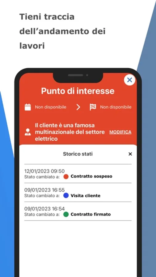 Aliante ti permette di gestire i punti di interesse della tua attività. Che tu sia un'azienda edile, di eventi, immobiliare etc.. attraverso un'app intuitiva (e un portale web) tu e il tuo team potete monitorare l'avanzamento dei progetti, aggiungere punti di interesse sulla mappa.