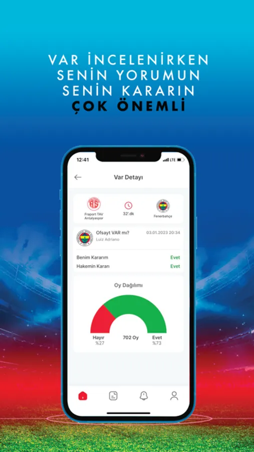 Sen de VAR mısın? ile VAR pozisyonlarını oylayabilir, genel oylamanın sonucunu görebilirsiniz. Uygulamamızda tartışmalı tüm süper lig maçları pozisyonları oylanır. “Ofsayt var mı?” “VAR’a gidilmeli mi?” “Penaltı var mı?” gibi soruları artık düşünmeye son. Tamamıyla gerçek kullanıcılardan oluşan oylama sisteminde pozisyonlar hakkında insanların genel görüşlerini gözlemleyebilirsiniz. Takımınızın hakem oyunları ile yenildiğini düşünüyorsanız Sen de VAR mısın? tam size göre!
