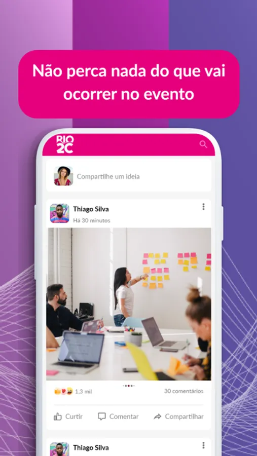 Com o aplicativo “Rio2C 2023”, você tem acesso a uma rede social exclusiva, pode fazer novos contatos, trocar mensagens com outros participantes, publicar suas fotos no evento, criar networking, ou seja, interagir com a comunidade. Além disso, você pode consultar a programação, avaliar conteúdos, dar feedback e responder quizzes. Utilize o APP e aproveite ao máximo os recursos.