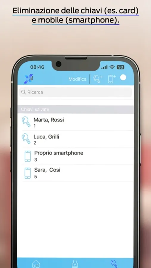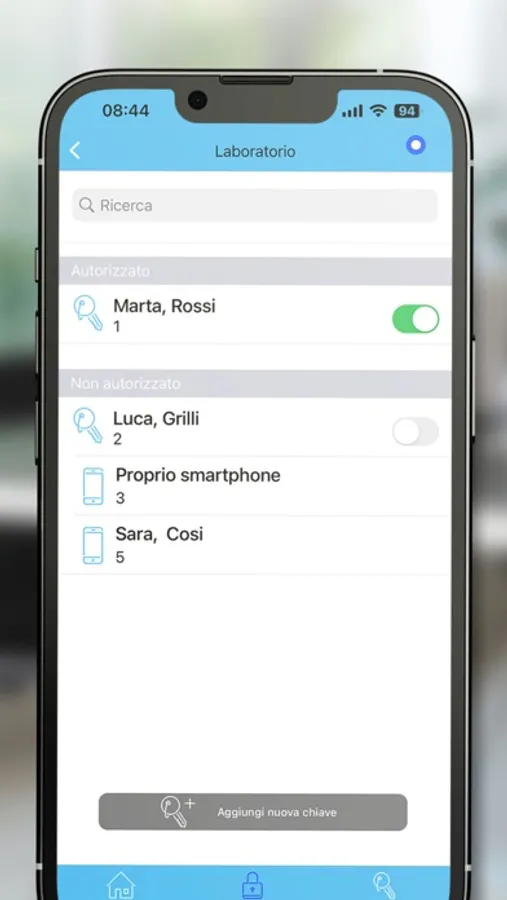 Puoi autorizzare gli utenti ad entrare con card, portachiavi, braccialetti, ma anche con smartphone.