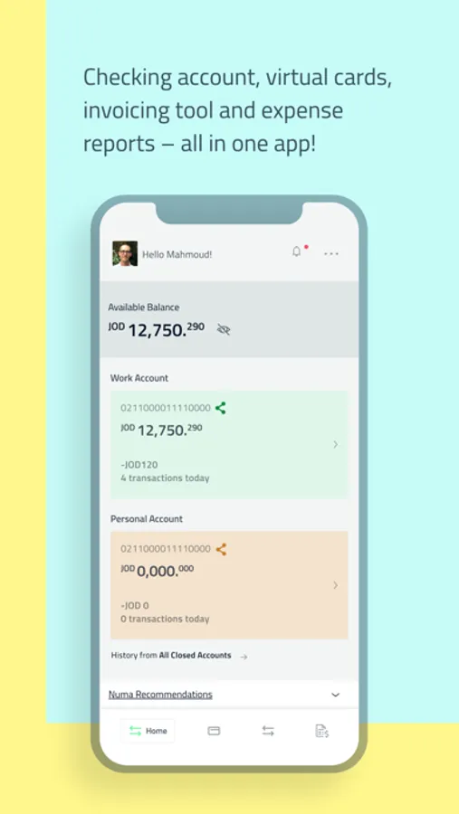 At Numa, we’re building financial solutions for freelancers, creators, and self-employed professionals in the Arab world. Why? Simply because traditional banking does not work for many self-employed professionals. Nua will empower freelancers & creators with financial services through our partners designed carefully in response to their needs. Services like Virtual Debit Cards, Invoicing, Money Management tools, and more, are all done from a single mobile app.